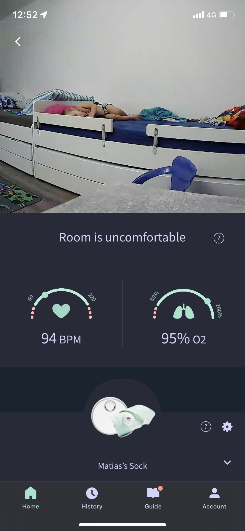 Когато видях рекламата на OWLET и след като прочетох за какво се използва, знаех, че това е нещо, от което се нуждаем. За съжаление, не можем да си го позволим финансово, но невероятната компания OWLET ни осигури съдействие и ние успяхме да видим уникалността на този чорап. Той може да проследява сърдечния ритъм, тенденциите в съня и нивото на кислород в кръвта.